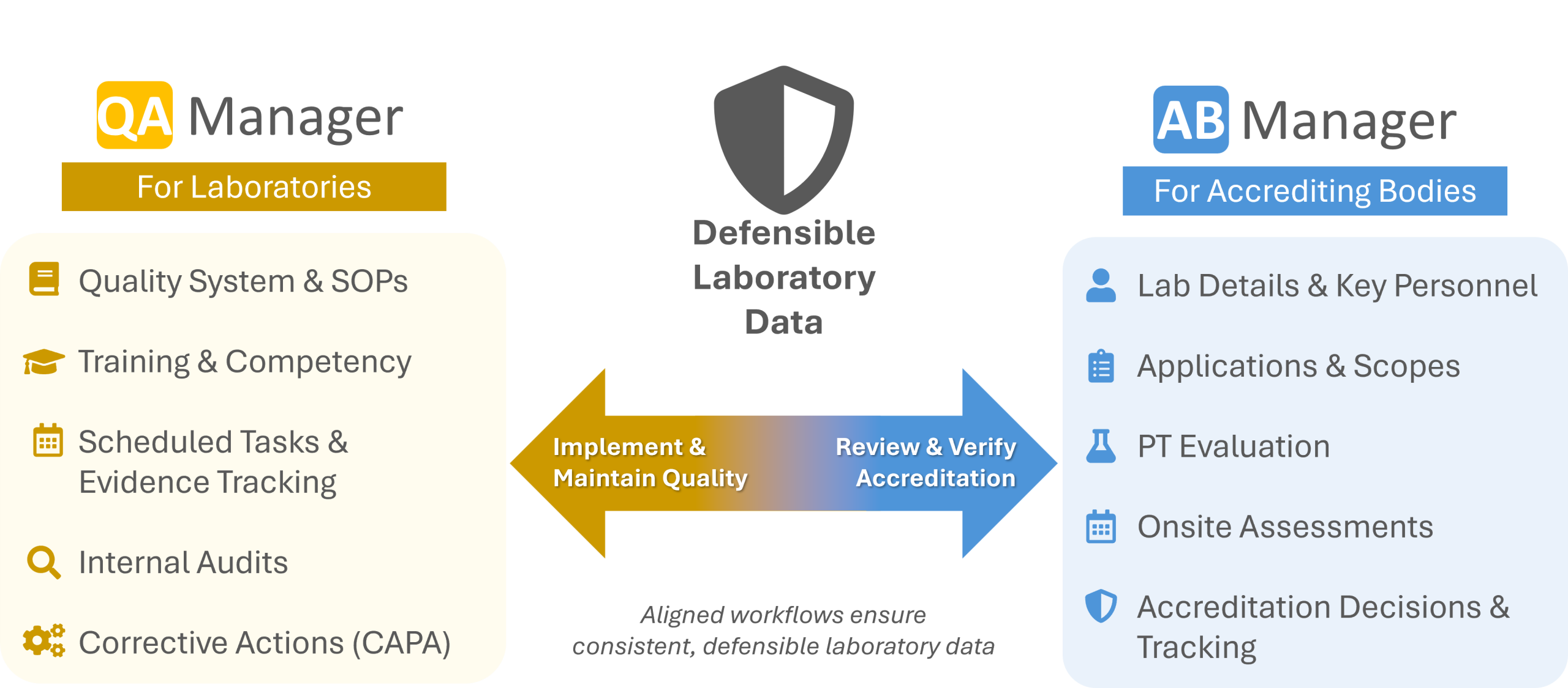 QA Manager and AB Manager bring both sides together in a structured, shared approach—reducing duplication, improving communication, and supporting more defensible outcomes.
